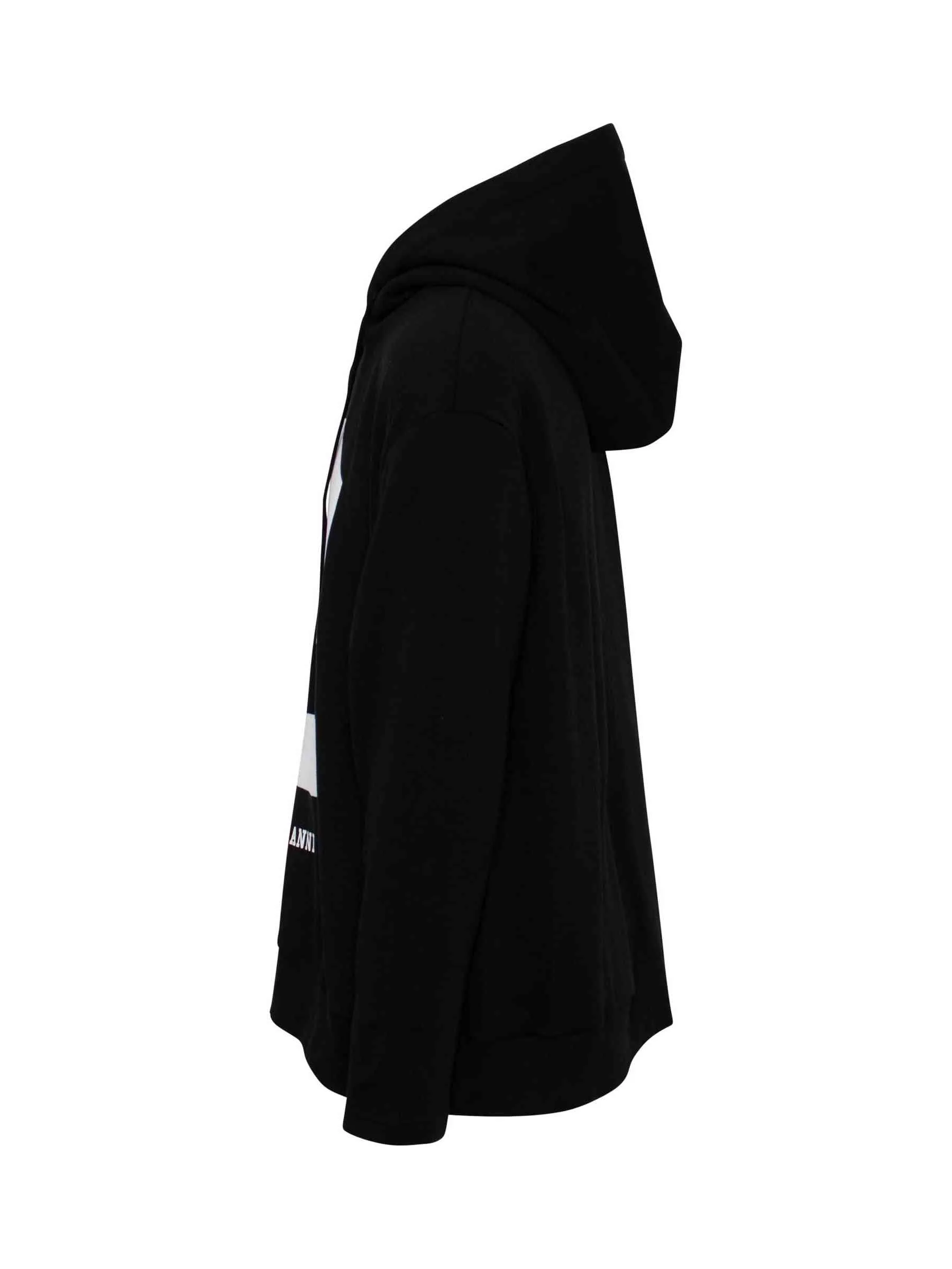 Long sleeves hoodie in black cotton with 3 Eleven graphic print at front