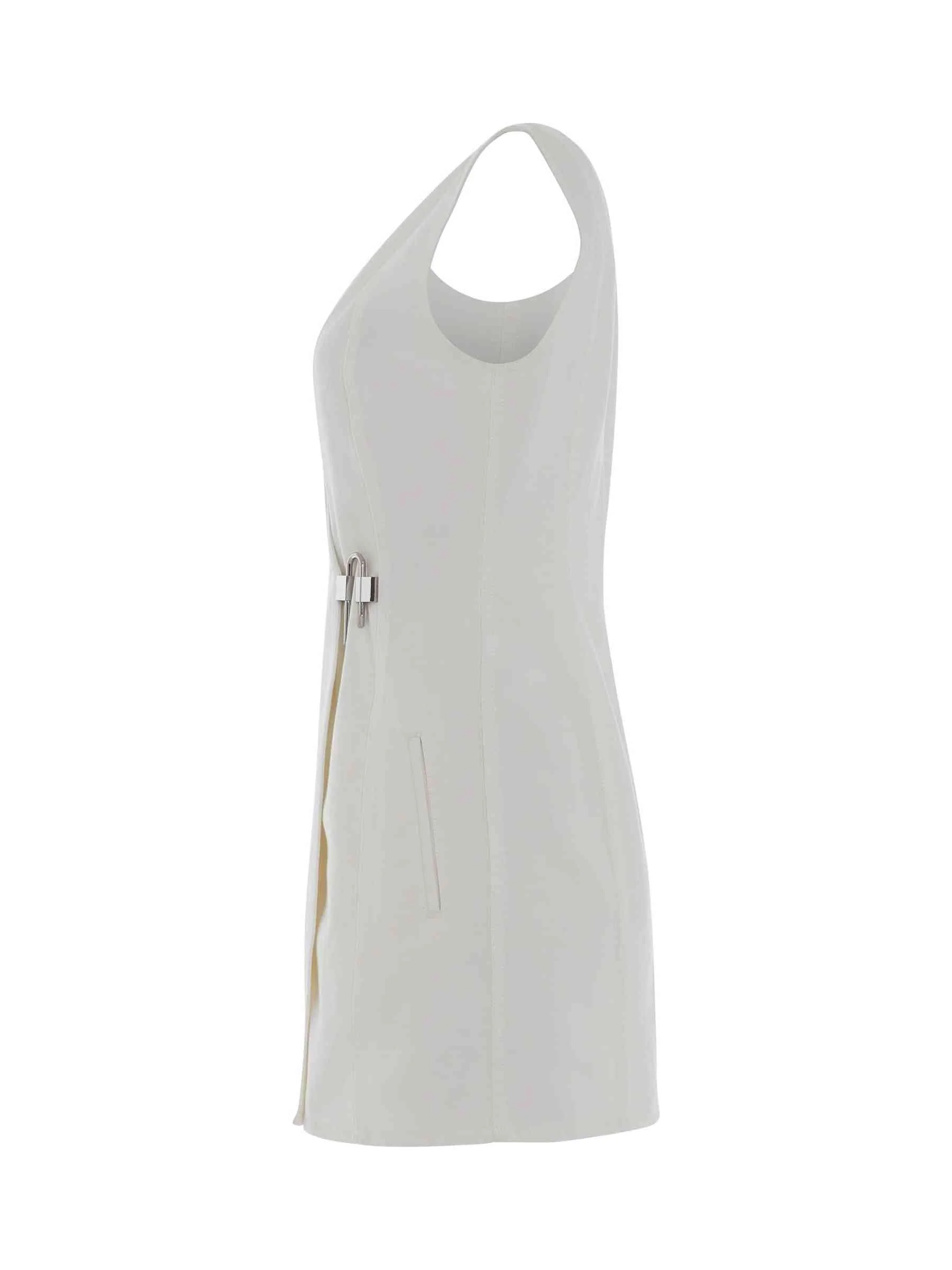 Sleeveless padlock denim dress in white cotton with signature 4G motif, padlock detail and v-neck closure